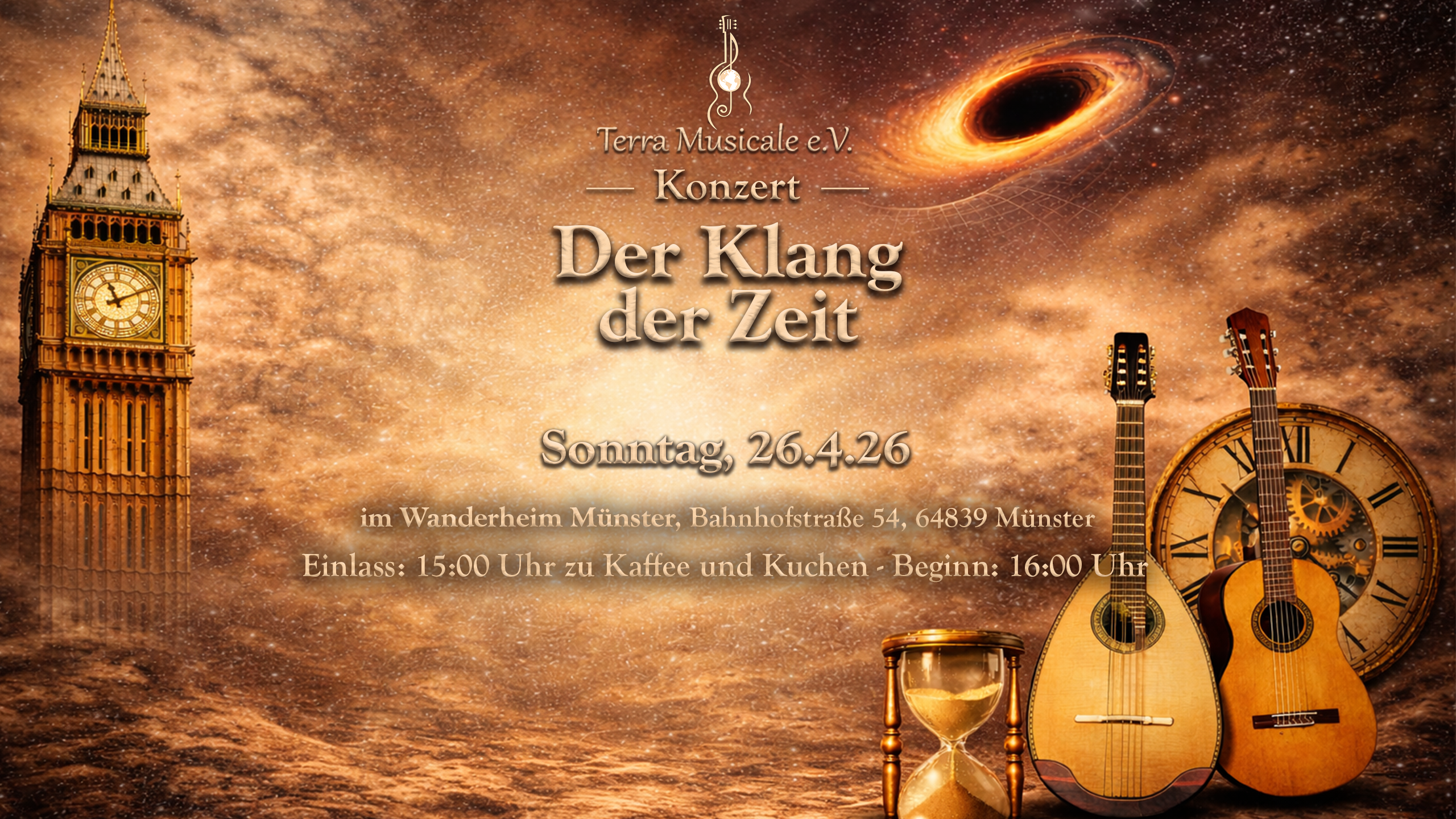 Unter dem Titel „Der Klang der Zeit“ lädt das Ensemble Terra Musicale am Sonntag, 26. April 2026 zu einem Konzertnachmittag in das Wanderheim Münster (Bahnhofstr. 54) ein. Die Wandergesellschaft „Frisch-Auf“ 1922 Münster e.V. bietet bereits ab 15 Uhr Kaffee und Kuchen an. Die musikalische Zeitreise durch Vergangenheit, Gegenwart oder gefühlte Zukunft beginnt um 16 Uhr. […]